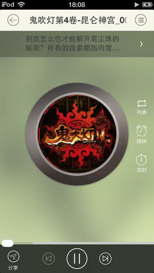 * 《鬼吹灯》书迷的听书必备神器; * 听《鬼吹灯》,带你体验恐怖紧张的气氛,打发闲暇无聊时间; * 红遍各大网络和书店的《鬼吹灯》小说,绝对精彩! * 在线听!边走边听!,无线环境下,想怎么听都行! * 断点续听,自动记忆上次听过的内容! 《鬼吹灯》是一部中国大陆的网络小说,作者为天下霸唱,主要内容是盗墓寻宝,是一部极为经典的悬疑盗墓小说,这部小说也迅速成为了图书销售排行榜的榜首。 传说人的身上有三盏油灯,一盏在头上顶着,另两盏在肩膀上。 据说是盗墓时,需要在东南角点一盏灯。如果鬼不让你盗墓,就会把灯吹灭。是一种活人和死人之间的协议。 《鬼吹灯》的解释是:“人点烛,鬼吹灯”是…