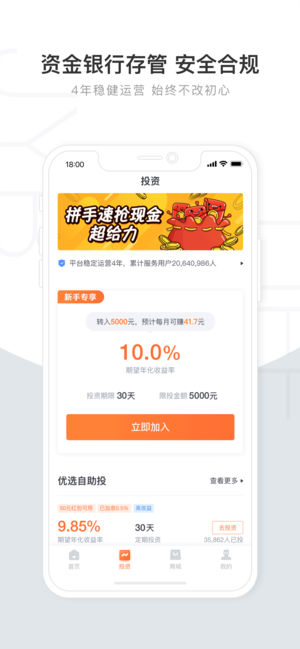 【业务模式】 加油宝金融科技服务(深圳)有限公司(以下简称“加油宝”)正式成立于2014年5月,实收注册资本5000万元,致力于成为以车主为代表的中产阶级人群,提供多赚好省更安全的创新产品的资讯、导购、销售和运营服务的互联网金融科技平台。 通过优质产品供应商为平台提供消费折扣,聚焦大能源、大健康等安全刚性消费领域的实体企业的合规方式进行应收账款转让合作,综合运用消费+金融+互联网手段,围绕以车主为代表的中产阶级人群的刚性消费场景提供创新产品。 【安全保障】 1. 安全第一,加油宝一直100%兑付产品利益和服务承诺; 2. 消费折扣来自油企、京东、等大型消费供应商,资金增值只做国家龙头石…
