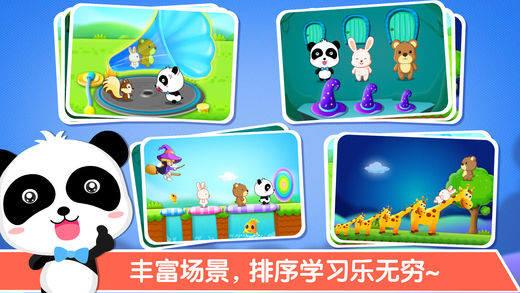 如果你要找训练宝宝排序思维的小游戏,【宝宝学排序】一定适合你! 【宝宝学排序】摆脱枯燥被动的学习方式,6个魔幻场景,将排序学习与奇幻故事完美融合,分别从长短、大小、高低、多少全方位对宝宝进行排序思维大训练,激发宝宝想象力和学习兴趣,让宝宝在玩乐中启蒙排序思维,聪明又好学。 3岁以后宝宝就进入了排序思维训练的关键时期,启蒙宝宝排序思维有助于宝宝今后阅读能力的培养,也是训练宝宝逻辑思维的重要途径。【宝宝学排序】专为训练宝宝排序思维设计,贴心语音、丰富场景,排序学习乐无穷! 产品特点: 1.简单有趣的界面、精心设计的动画效果; 2.贴心语音+视觉引导,方便年龄小的宝宝独立操作; 3.生动有趣的故事内容,激发宝宝学习兴趣。 宝宝巴士以孩子的兴趣启蒙为出发点,从健康、语言、社会、科学、艺术五大领域关注幼儿成长,吸取蒙氏教育精髓,根据幼儿不同年龄段左右脑发育、敏感期特点和学习重点来设计产品,打造“年龄+能力”的多元化产品体系。让孩子在游戏中独立思考,自由学习,享受探索世界的乐趣。 _________ 设计理念: 宝宝巴士(BabyBus),专注启蒙,而不仅仅是教育。 我们专注于启发,而不只是学习。 我们专注于能力培养,而不只是单一认知。 我们专注于寓教于乐,而不是填鸭式教学。 宝宝巴士,快乐启蒙!全球2.5亿家庭用户的早教首选,您身边的幼儿教育专家! 搜索【宝宝巴士大全】,就可以下载宝宝巴士的所有早教APP了哦~ 在宝宝巴士,我们自己也身为父母,所以非常重视儿童的健康和隐私。下载应用前,您可以从这里阅读我们的隐私政策:http://cn.babybus.com/index/privacyPolicy.shtml _________ 欢迎联系: 微信:宝宝巴士 微博:@宝宝巴士 官网:http://www.babybus.com 邮箱:ser@babybus.com