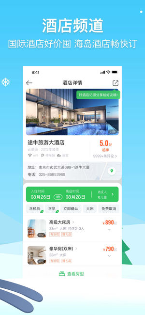 【产品简介】 途牛旅游——让旅游更简单,让出行更方便! 途牛旅游APP,为全国上百个城市,提供7x24小时服务!累计出游人数5800万+人次,400万+条真实点评,用户满意度高达95%! 每天N条特价线路,让你想买就买说走就走! 【途牛旅游】 随时随地预订酒店、机票、火车票、汽车票、景点门票、出境游、跟团游、周边游、自由行、自驾游、邮轮、租车、公司旅游、婚纱旅拍等,产品全面,价格透明,各种旅游度假产品任你选。 APP提供快捷电话服务,享受24小时电话服务的安心旅程,出游归来点评还送现金,途牛和你才是真爱! 【特色功能】 1. 手机特卖:限时秒杀、尾货特价、预售钜惠、超值爆款、专场精选,品质…