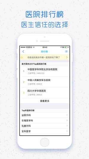 医库—医生从医必备的移动学习工作平台。 【Top医院排行榜】 南方周末联合医库每年将发布基于各细分科室的Top医院排行榜,该榜单由医库实名认证医生同行评议产生。有了排行榜作参考,能帮助患者找到最合适的医院和科室,获得更好的诊疗。 【医生的继续教育宝库】 -医学题库王涵盖执业医师考试、药师、护士、主治等全部医考类型,聚集海量免费真题和解析。 -讲座直播,权威行业专家教你病例分析、疾病解答、手术技巧…随时随地观看医学视频。 -基层医生成长平台,帮助医生提升医学知识和临床实力。 -3D手术视频动画,详解各类手术过程,感受身临其境的学习方式。 【专业医学资源知识库】…