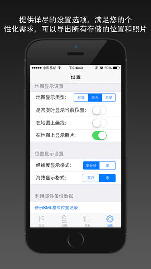 最省电、省流量的位置记录工具。 简洁易用位置记录工具,在行进过程中,可以随时记录当前位置的经度、纬度、海拔和地址信息,并添加照片。包括照片在内所有数据均可导出,并能在Google Earth等后处理软件中打开。位置信息所采用WGS84坐标系,其精度取决于位置信息采集环境和手机配置。 [省电省流量设计] 1. 不记录轨迹,仅记录您感兴趣的位置点信息。 2. 定位功能是否开启完全由用户决定,提供按钮进行开关操作,用的时候打开即可。 3. 软件进入后台自动关闭定位功能,关闭后台刷新功能。 4. 无论是在定位功能还是在地图显示功能上,软件做了最大可能的优化,使得电量消耗和网络流量最小。 5. 只有…