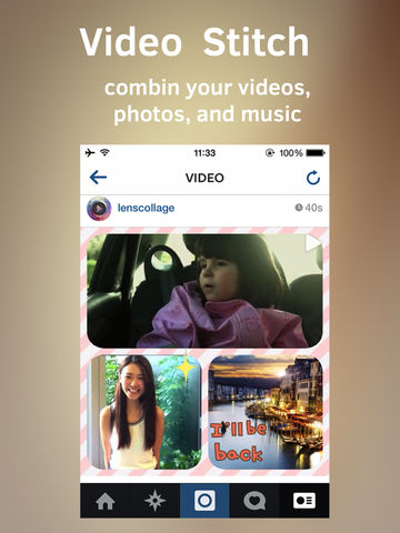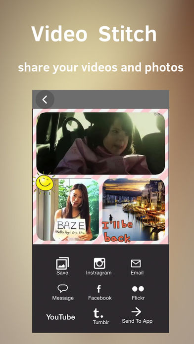 哪些是你最喜欢的视频?哪些是你最喜欢的图片?赶紧动手将它们组合在一起,与朋友们一起分享吧!视频拼贴软件帮你将每个瞬间变为深刻的记忆。 将视频和图片瓶贴在一起将完美地记录每个神奇的时刻。精致的图片深深地震撼了你;一个简单的视频开启你欢笑相伴又极其壮观的旅程;美妙的背景音乐唤醒你身体的每一根神经;实时分享可以帮你与不管在哪里或做什么的每个人一起享受最美好的时刻。 此应用程序不会让你错过生活中任何特别非凡的时刻!赶紧下载吧! 基本功能 *从相册选择视频或随时拍摄视频 *从相册选择图片或随时拍摄图片 *把照片和视频按照你喜欢的方式组合起来 *选择美妙的背景音乐 *即时预览 核心功能 *100种可调整布局 *大量边框配色方案 *大量边框底纹方案 *图片与视频大小可调整 *随意添加或删除视频和图片 *音量可调节 *随意编辑 社交分享 *支持Instagram分享 *支持Facebook分享 *支持Youtube分享