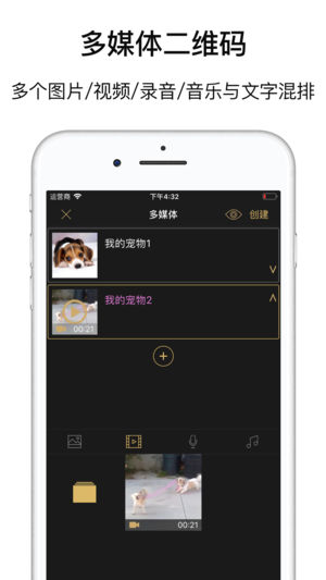● 个性化精美二维码生成神器 - 一键制作专属彩色二维码,支持文本、网址、图片、视频、语音、音乐、商务名片、WIFI、比特币等格式,多种精美主题和边框任君选择。 - 支持创建活码,二维码图案不变,内容可随时修改,还可设置显示有效期。 - 推出融合码功能,二维码与彩色图片完美融合,非凡出众。 - App二维码可区分不同系统进行跳转,iOS或其他系统扫描此码后,将自动跳转到设置好的对应链接地址。 - 聚合二维码区分不同App进行跳转时,使用不同App扫描时,可以打开设置好的对应链接。 - 轻松生成适用于微信的淘宝二维码,客户使用微信扫描也能保证良好体验。 - 美化二维码只需3步,瞬间让微信、微博、…