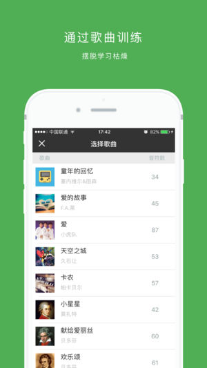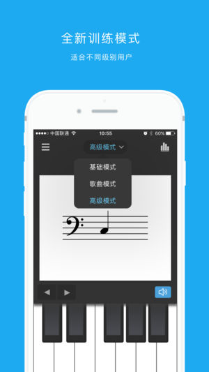 == 全新五线谱识谱入门训练App == 新歌曲模式助你快速掌握五线谱! 现代音乐学习入门,以五线谱作为最基础的入门课程,不管是学唱歌、作曲、编曲、作词、艺考还是弹钢琴、拉小提琴等乐器学习,都离开对五线谱的认识和学习。你想学习五线谱但苦于练习太过枯燥无聊?想简单轻松又能快速地掌握五线谱必备知识? == 应用功能特色 == 1.适合不同层次人群的三大训练模式:基础模式、歌曲模式和高级模式。 2.专业的数据跟踪系统。 3.视频教程入门与必备知识。 下面详细介绍: 【三大训练模式】 1.基础模式:适合初选者,采用高音谱号、无加线、无变化音,让你从最常用最基础的音符学起五线谱 2.歌曲模式:枯…