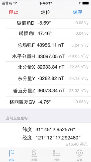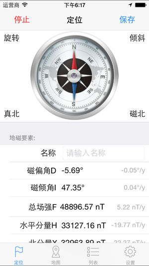 一个简洁易用的地磁与位置记录工具。 在行进过程中,可以随时记录当前位置的地磁要素、经度、纬度、海拔和地址信息,并添加照片。包括照片在内所有数据均可导出,并能在Google Earth等后处理软件中打开。 位置信息所采用WGS84坐标系,其精度取决于位置信息采集环境和手机配置。 各个地磁要素,包括磁偏角、格网磁差、磁倾角、总场强和各个分量等,均采用全球地磁模型WMM和全球重力场模型EGM96(WGS84)计算得到。 所有信息仅供参考。