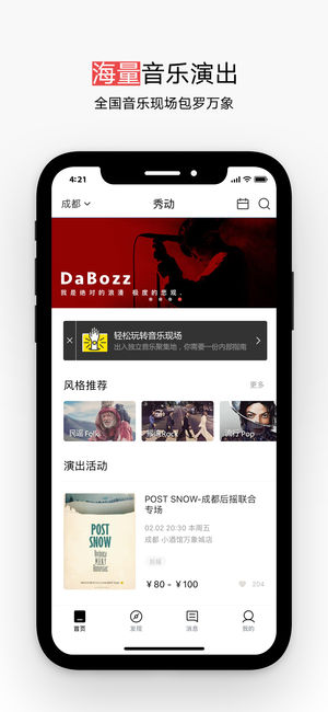 【应用说明】 秀动Showstart - 由太合音乐集团推出的一款专业一站式演出查询和购票应用,是喜欢独立音乐的音乐品味人群的聚集地! 1、大量优秀的现场演出供您挑选,让您第一时间获取全面细致的Live演出资讯。 2、专业便捷的票务系统,全面支持在线支付、移动支付,安全快捷。 3、购买演出电子票,到现场可凭购票手机号或二维码直接扫码入场。 4、对于大中型现场演出,购票后支持演出实体票门的自取和寄送。 5、支持众筹项目的发布,不同的众筹模式适用于不同的项目和产品。 6、在系统设置 - 关于我们页面,有链接指向服务条款和隐私政策说明页面。 【功能说明】 1、新用户注册APP即可领取50元优惠券,…