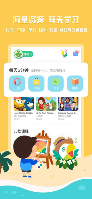 叽里呱啦专注0-8岁儿童英语启蒙,从听、说、读、写四个维度,分级分龄,以呱呱美语课为核心体系课程,让孩子系统性体系化进行英语学习。 ·针对0-1岁宝宝的儿歌早教课程:种子路线 有效的磨耳朵才能帮助孩子培养出好的语感。【种子路线】通过12首最经典的儿歌将“精听”教学法呈现给新手爸妈。每一首英语儿歌都搭配了适合婴儿的抚触,律动和游戏,手把手教会你在家给孩子做英语早教。 ·针对1-3岁宝宝的课程:萌芽路线 【萌芽路线】选择宝贝的一天作为主题,12个高频生活场景从起床、梳洗、用餐、午休、游戏等,家长和孩子能一起学习到家庭环境中最实用的词汇与句式,自然将英语融入到生活中。每天都能用得到! ·针对3…