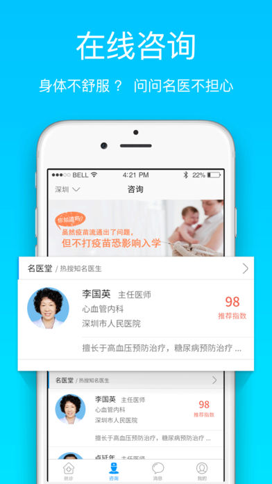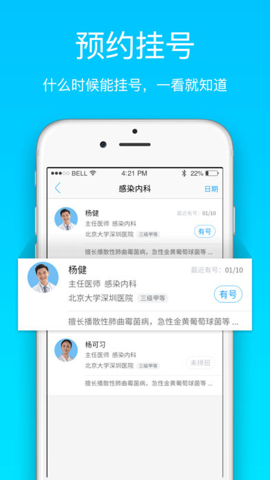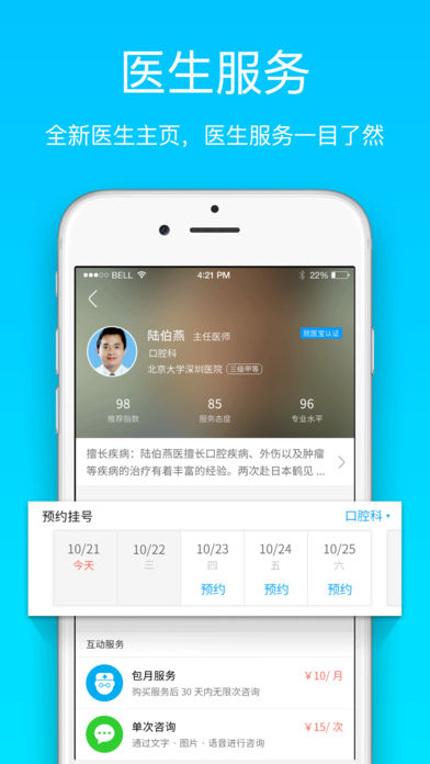 就医看病必备软件,医院预约挂号、在线问诊、手机缴费、查看报告和病历,就用“就医宝” 产品功能: 【预约挂号】:1分钟挂专家号,2000余家医院号源免费预约 【排号提醒】:手机随时查看医院候诊、检查、取药等排号信息 【名医咨询】:专家在线,诊后可绑定主治医生,保持联系和复诊预约 【检验报告】:随时随地在线查阅并下载各项检验检查报告 【手机缴费】:看病期间手机支付各项医院医疗费用,支持医保线上扣费 【专业导诊】:专业医生为你诊疗指航,看病不再迷茫 公司荣誉 2013年:被评为“50大最具有投资价值企业” 2014年:与全球医药化工集团“默克雪兰诺”签署战略合作协议 2015年:与BAT达成深度战略合作 2015年:B轮融资2.2亿人民币 2016年:就医宝被评选为“移动互联网2015年度最具人气应用奖” 就医宝已覆盖全国454个城市!接通公立医院超过2000家! 被海南、黑龙江、深圳、呼和浩特、武汉等省市卫计委官方授权为统一预约挂号平台。 热门科室:妇科、产科、儿科、妇产科、小儿内科、眼科、皮肤科、耳鼻科、呼吸科、消化内科、中医科、泌尿外科、神经内科、心内科、男科等科室 疑难急症:糖尿病,脑血管病,高血压,心脏病,痛风,面瘫,脑瘫,肝硬化,酒精肝,肝损伤,尿毒 症,急慢性肾炎,哮喘,肝血管瘤,肾盂性肾炎,肾积水,截瘫等疾病不再愁
