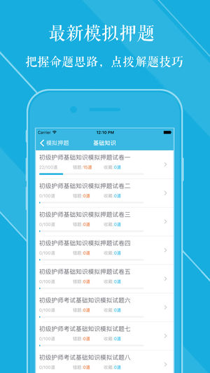本软件为初级护师考试的软件,精心准备了2019年最新考试题库。(共计15000多道)分为不同题型,并有答案解析。以及高频考点(2300个考点),为考试的提供了充分的复习准备,可随时随地学习练习,有效帮助顺利通过考试,学习知识通过考试必备神器! 【功能介绍】 1、专项练习:基础知识、相关专业知识、专业知识、专业实践能力等科目最新考题A1/A2、A3/A4、B型题,并有答案解析。 2、章节练习:按照章节划分的最新考题,含解析。 2、历年真题:最新2011年~2018年历年真题含解析。 3、模拟押题:最新模拟押题,检测复习成果。 4、必考考点:高频考点必背知识点,包括《基础护理学》、《外科护理…