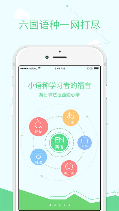 △每天5分钟,随时随地学外语微课。语种包括英语、日语、韩语、法语、德语、西班牙语、意大利语。 △名师免费讲解《新标日》《延世韩语》《赖世雄美语音标》等经典教材。 “沪江学习”是由国内最大的在线教育平台——沪江开发的一款外语微课平台。 ===产品特色=== 【5分钟1节课】 5分钟1个知识点。等人等车时掏出手机,碎片时间不浪费。 【光学不练假把式】 一节微课由听、学、练(习)、测(试)组成,巩固知识点效果好。 【中小幼+兴趣课】 儿童英语歌曲、绘本、美术、地理、粤语,可以和孩子一起学了! 如果你在使用过程中遇到问题,欢迎通过以下任一方式联(gou)系(da)沪学菌 1. 微博:沪江学习 2. 官方QQ群:399394568 3. 沪江学习社:http://st.hujiang.com/hjapp/ 4. 微信个人号:hujiangxuexi