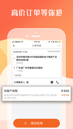 轻轻松松月入过万,让赚钱变得更容易! ****【操作简单】**** 操作方便,容易上手,分分钟接单 ****【百万订单】**** 每日上百万订单,抢单随你喜欢 ****【收入颇高】**** 客单均价150元,每天10单,月收入轻松过万 ****【超多福利】**** 车贴补助,加油减免,每月关怀、社保、无车加入、轻松办理信用卡、免费wifi,流量随便用 ****【无空返】**** 往来无空车,成本减半,利润翻倍 ****【全智能】**** 城市智能推送,告别路边趴活 ****【大车队】**** 自荐客户,拓宽客源,优先接单 匹配车型: 小面、中面、金杯、依维柯、单双排货车…