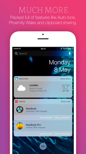 Unlock your Mac with just your fingerprint, passcode, or watch – without even unlocking your iOS device. –––––––––––––––––––––––––– Requires a Mac with Bluetooth LE (Low Energy) running macOS Yosemite or newer, and an iOS device with Bluetooth LE running iOS 8 or newer. Please make sure your device…