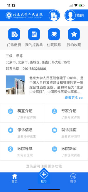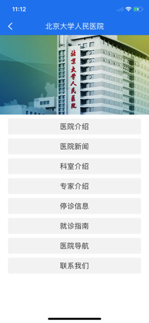 北京大学人民医院为方便患者就医,推出手机APP实现功能: 1.预约挂号:在线挂号更便捷 2.在线缴费:在线支付挂号费用 3.报告查询:在线查询检验检查报告 4.停诊查询:在线查询医生停诊信息 5.医生介绍:在线查询医生团队 6.医院信息:提供医院新闻、科室介绍、就诊指南、医院导航等