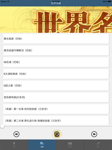 领略世界顶级的绘画技艺, 感受震撼听觉的艺术享受! 不朽经典佳品,值得珍藏。 1、天鹅(圣桑) 2、威廉退尔序曲(罗西尼) 3、钟(李斯特) 4、水上音乐(亨德尔) 5、自新大陆(德沃夏可) 6、金婚进行曲(德沃夏克) 7、幽默曲(德沃夏克) 8、军队进行曲(舒伯特) 9、乐与之时(舒伯特) 10、圣母颂(舒伯特) 11、菩提树(舒伯特) 12、小夜曲(舒伯特) 13、f小调瞬间音乐(舒伯特) 14、鳟鱼五重奏(舒伯特) 15、未完成交响乐(舒伯特) 16、结婚进行曲(门德尔松) 17、春之歌(门德尔松) 18、乘着歌声的翅膀(门德尔松) 19、夏夜午后之梦序曲(门德尔松) 20、溜冰圆舞曲(施特劳斯) 21、蓝色多瑙河舞曲(施特劳斯) 22、春之声圆舞曲(施特劳斯) 23、皇帝圆舞曲(施特劳斯) 24、杜鹃圆舞曲(施特劳斯) 25、风流寡妇圆舞曲(施特劳斯) 26、棕发少女(德彪西) 27、月光曲(德彪西) 28、吉他奏鸣曲(威尔弟) 29、四季(威尔弟) 30、土耳其进行曲(莫扎特) 31、小夜曲(莫扎特) 32、小步舞曲(莫扎特) 33、圣诗(莫扎特) 34、交响曲(莫扎特) 35、第二号横笛协奏曲(莫扎特) 36、第二十一号钢琴协奏曲(莫扎特) 37、D大调小号协奏曲 38、致爱丽丝(贝多芬) 39、月光奏鸣曲(贝多芬) 40、第一乐章 有活力的快板(命运) 41、第二乐章 流畅的行板(命运) 42、第三乐章 快板(命运) 43、第一乐章 热烈的快板(英雄) 44、第二乐章 葬礼进行曲(英雄) 45、第三乐章 诙谐曲 活泼的快板(英雄) 46、第四乐章 终曲很快的快板(英雄) 47、梦幻曲(舒曼) 48、蝴蝶(舒曼) 49、小步舞曲(比才) 50、阿莱城姑娘(比才) 51、卡门(比才) 52、G弦之歌(巴哈) 53、E大调前奏曲(巴哈) 54、船歌(巴哈) 55、咏叹调(巴哈) 56、雅克的迦可琳眼泪(巴哈) 57、舞乐组曲(巴哈) 58、爱的协奏曲(巴哈) 59、匈牙利舞曲第五号(勃拉姆斯) 60、圆舞曲(勃拉姆斯) 61、第三号交响乐(勃拉姆斯) 62、摇篮曲(勃拉姆斯) 63、1812序曲(柴可夫斯基) 64、C大调小夜曲(柴可夫斯基) 65、马祖卡舞曲(柴可夫斯基) 66、天鹅湖序曲(柴可夫斯基) 67、西班牙舞曲(柴可夫斯基) 68、那波里舞曲(柴可夫斯基) 69、如歌的行板(柴可夫斯基) 70、双人舞(柴可夫斯基) 71、四个小天鹅(柴可夫斯基) 72、第一号钢琴协奏曲(柴可夫斯基) 73、圆舞曲(柴可夫斯基) 74、匈牙利舞曲(柴可夫斯基) 75、罗密欧与朱莉叶幻想曲(柴可夫斯基) 76、C小调夜曲(肖邦) 77、F大调夜曲(肖邦) 78、#C小调兴幻想曲(肖邦) 79、#F大调船歌(肖邦) 80、波兰圆舞曲(肖邦) 81、马祖卡(肖邦) 82、沉思曲(马斯奈) 83、朱尔的哀思(马斯奈)