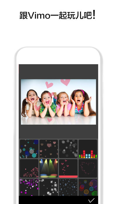 * Best New App on AppStore World Wide. * App Of The Week on AppStore in Japan, South Korea, and other Asian Countries. 想在您的视频里添加更加带劲又有趣的效果,Vimo是最佳选择。 使用Vimo所提供的Motion sticker,无论哪个视频都可变得更加带劲又有趣。 Motion Sticker是具有约50~100帧表情,可按照Timeline活跃。(像GIF) 还能在Motion sticker里给予多样的动漫(旋转,扩大,缩小,移动),还可以按照您所愿的位置移动。会不会感到这些工作又复杂又难? 根本不是这样的。提供又简单又容易的UI,谁都可以容易使用。 立刻使用Vimo,制作只属于您的出色视频吧。 * 产品特点 - 动漫表情 约50~100帧组成的表情。跟单纯的1~2帧表情有天大的区别。 可编辑多样的色彩 因为采用Vector格式,扩大多少照片都不会碎,依然鲜明清晰。 - 记录移动路线 按照Timeline移动Motion表情,就会记录移动路线。 按照已存入的移动路线,表情将按照timeline自动移动。 - 动漫 移动、旋转、扩大及缩小动作表情,可自动进行动漫。 - Timeline 表情的出现及消失时间可随意调整。 - 我的作品 所有工作内容可记录保存。 可随时修改。 - 简单使用方法 使用所有功能,一点也不复杂。请亲自试用吧。 - 分享 把您出色的视频分享到Youtube, Vimeo, Facebook, Instagram等吧。