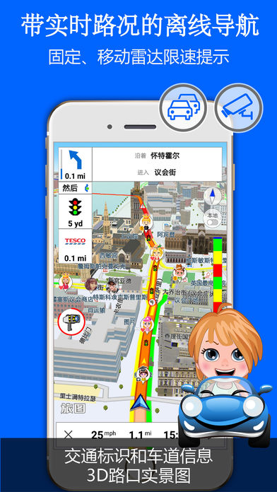 离线/在线2D/3D地图;离线/在线搜索引擎;带实时路况的导航;官方中文地铁线路图;火车、地铁、公交和电车综合路径计算;在欧洲预约出租车。 离线/在线2D/3D地图:200个国家、1000万条街道、1亿个地点;3D地标、3D建筑、3D树木;地图上显示步吧、动态及出租车。 离线/在线搜索引擎:搜索城市、地址、地点、周边餐厅、周边商铺(如星巴克)等等。 带实时路况的离线汽车导航:带实时路况的2D/3D专业汽车导航;固定、移动雷达限速提示;显示交通标识和车道信息;3D路口实景图。 离线步行导航:指南针模式下,在带有3D城市和3D地标的地图上,可以更容易找路。 离线骑行导航:骑行路径计算。 离线中文地铁线路图:规划地铁导航最佳路线;在地下无网的情况下仍可正常运行,并且使用的是官方的地铁线路颜色。 火车、地铁、公交和电车综合路径计算:全部为离线情况下计算路径,并可根据不同的公共交通选项规划路线,且可以显示途经的每一条线路和站名。 在欧洲预约出租车:预约、支付、聊天、评论出租车司机;前往机场和火车站的最佳方式;预约时已估算好费用;查看司机接驾路线。