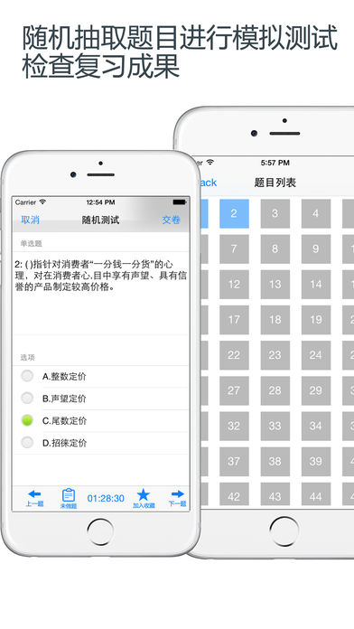 本软件为营销师三级资格考试题库的软件,精心准备了2015年最新考试模拟题库和历年考试要点(共计2000道)。为考试的提供了充分的复习准备,可随时随地学习练习,有效帮助顺利通过考试,学习知识通过考试必备神器! 【功能介绍】 1、章节练习:针对章节的习题进行强化练习,可选择不同题型,并可手动将易错或未牢固掌握的题加入复习库和错题库,以便反复练习。 2、随机模拟测试:随机生成试题模拟测试,检验复习成果,可自动将错题加入到错题库。 3、历年考试要点:提供最新历年考试要点,可加入收藏便于记忆。 4、错题库:可自动加练习过程中错题加入收藏,以便反复练习。 5、收藏夹:可在练习过程中自行收录题目到收藏夹,形成自己的小题库,针对性练习,提高通过率。 6、安装后可离线浏览,不用联网也可以浏览,速度快,无广告、无插件。 7、可设置答题时界面的字体大小。 8、支持同时在iPad/iphone/itouch等多种设备中安装。 9、定期更新题库。