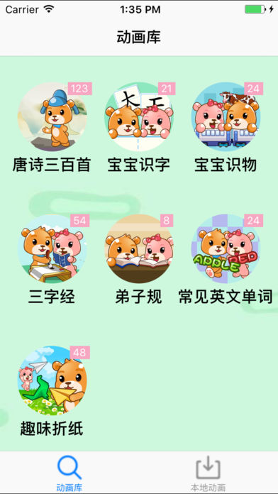 海量免费童话故事,经典儿歌,唐诗宋词,识字英文,持续更新。 【特色功能】 1,【动画精美】:角色刻画生动,小宝宝更喜爱。 2,【涵盖儿歌故事国学识物折纸】:涵盖宝宝所喜欢的经典儿歌,童话故事,唐诗宋词儿童识物,学汉字,折纸等,一个App满足各类需求。 3,【免费+离线下载】:资源可以通过高速服务器下载到本地,没有网络也可以看。 4,【极简设计】:极简的界面和交互设计,三种连播功能,看动画不费劲,爷爷奶奶也可以帮宝宝使用。 5,【每周更新】:每周都有新内容,保持新鲜感。
