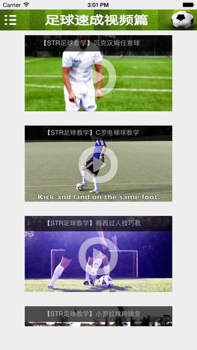 App Store中最据权威的足球宝典。让你可以在短时间内从菜鸟到高手的必备神器。 速成:只要你对足球有一点点兴趣,打开宝典看一看,分分钟让你成为足球界中的“战神”! 易学:我不是一本枯燥的足球教科书,用文字来阻碍你的行动,我是一个简简单单按照视频步骤动起来,就一定能够成功的宝典式App! 随时随地:利用你的任何时间,上班公交车,下班挤地铁,什么时候想看了拿出来看看,下次踢足球的时候照样做一做,你的朋友或队友就会明显感觉到你的水平在提升。 本App中还有世界球星冠军贝克汉姆、梅西、C罗等,诸多位球星手把手为您演示,让您深度了解足球的各种炫酷技巧。