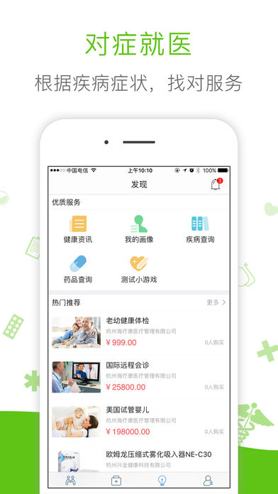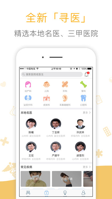 作为第三代“互联网+”医疗健康平台,微脉以“让医疗健康服务不再难”为使命,基于医疗健康服务的属性,以城市为单位,连接各级医疗机构,建设城市级医疗健康大数据平台。为用户提供基于互联网的预约挂号、报告查询、家庭健康档案查询以及个性化的健康管理等服务,从而开创『人人拥有健康档案』『家家拥有家庭医生』『城城拥有网络医院』的医疗健康cHealth新时代。 【一站式挂号】 · 一键挂号,预约、问诊、缴费、查询报告全程自助完成,省去排队烦恼。 【多渠道寻医】 · 名医问诊、智能就诊等多种就医渠道,为你的健康保驾护航。 【管家式档案】 · 全家健康,一手掌握,帮您更好了解家人的健康状况。 【个性化定制】 · 我的专业,你的健康,为你定制最贴心的健康服务套餐。 虽未谋面,愿能懂你;虽未相识,愿能助你。