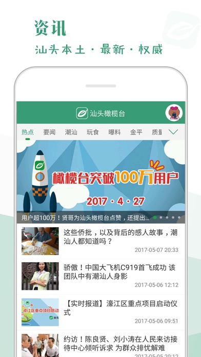 汕头橄榄台是汕头市广播电视台倾力打造的手机客户端新媒体平台,该平台集新闻、政务、民生、电商等综合业务,以图像、文字、音频、视频等形式,通过手机客户端,传播广播电视台新闻资讯节目,整合城市管理资源,在政府、企业、市民之间搭建互相沟通的手机客户端移动平台,方便广播电视节目点播,方便各类文化生活信息查询与浏览,方便党政机关发布应急、权威资讯,方便企业实施电子商务活动。