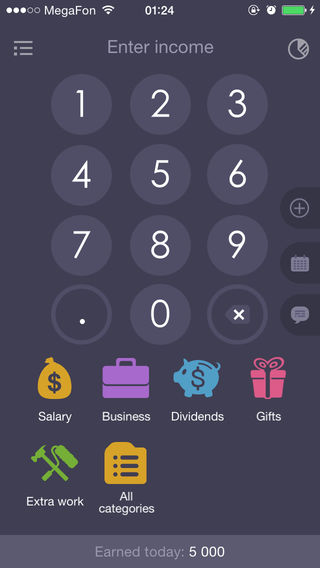 Income OK - the fastest way to track your income and expenses. It isn't necessary to open the app to input new payment or income on iOS 8! You could enter data in the widget of the app. The features of the app: - expenses - income - the handy widget - subcategories - pie diagram - sync with iCloud - password - Touch ID - Export to CSV - Backups