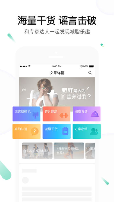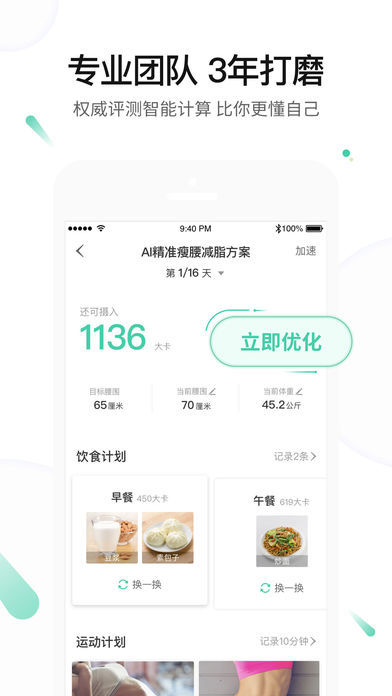 减约-AI精准减脂专家 - 比你想象的更懂你 减约APP依托独创的BTCM专业减脂理论体系,将吃与动完美结合;同时运用AI精准计算,分析海量数据、智能优化,不断为用户提供最科学的专属定制方案。 - 多套方案任君选择 减约APP为腰腹部肥胖的用户,潜心研发了AI精准瘦腰减脂方案,该方案是首套运用人工智能技术的减脂方案,可以为用户推荐精准配餐及运动计划。为喜爱运动的用户提供了户外跑走燃脂方案、D28高效燃脂方案、T20极速燃脂方案,搭配方案中推荐的饮食,健康减脂;同时,贴心的减约也为“运动恐惧者”提供了小轻轻独家轻食方案,不运动也能瘦~ - 智能工具贴心、方便 实时记录分析:数字不再是摆设,让减脂过程更直观 减约社区:海量干活,趣味内容,应有尽有 食物度量衡体系:食物与参照物的直观对比,使饮食记录更精准 #遇见减约,爱上完美自己!# 了解我们:官网 www.jianzhishidai.cn 减脂干货:微信公众号——减约说 瘦身猛戳:新浪微博——@减约说 贴心陪伴:减约嘀咔QQ号——3124812532