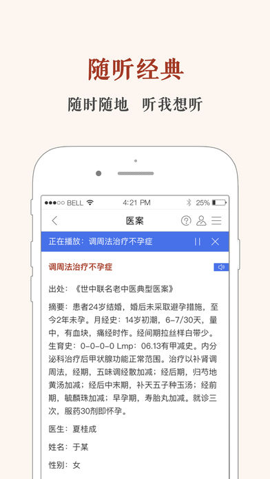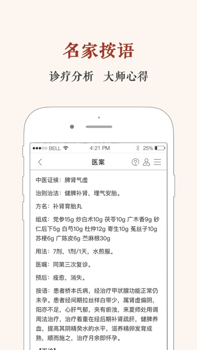 中医医案——中医名家医案查询手册 中医智库旗下一款集成古今名家中医医案的工具类App。收录了古代名医、60位国医大师、159位名老中医的海量医案,是中医医生、爱好者进行学习和研究的必备工具! 产品特色 【专业权威】选用世界中医药学会联合会权威数据! 【科学准确】中国中医科学院专家组监督指导! 【名家病案】叶天士、刘渡舟、施今墨、陈可冀名医荟萃! 【海量医案】4万例名家医案,覆盖全科,不断优选与更新! 【内容详实】辨证用药、治法治则、按语分析一应俱全! 【精准查询】支持医家与科室查询,症状、脉象、舌相搜索! 【听学医案】随时随地,听名家医案,学习大家辨证思路! 【方便实用】随时随地查询病案,充分利用碎片时间! 关于中医智库 中医人的掌上知识库!源于国家中医科研项目成果,汇聚了最全面的中医经典古籍、名家医案、中医方剂、智慧开方等。为中医学习、多点执业、病历管理必备工具。 ▶ 科研项目背景 国家科技部350种传统医籍整理与深度加工项目 国家中医药管理局传统知识保护工作平台项目 世界中医药学会联合会名老中医经验传承项目 国家名老中医学术经验传承项目 国家中医古籍数字化平台项目 中国中医科学院中医古籍数字化加工项目 中国中医科学院中医标引系统项目 中国中医药传统知识保护名录数据库 中国医药科技出版社中医古籍文献库 中国中医药非物质文化遗产保护项目 ▶ 联系我们 官方微信:神黄中医智库 客服热线:153-1144-5413 商务合作:contact@zk120.com