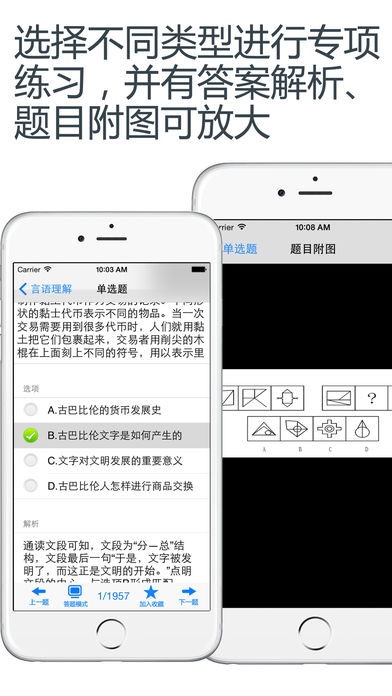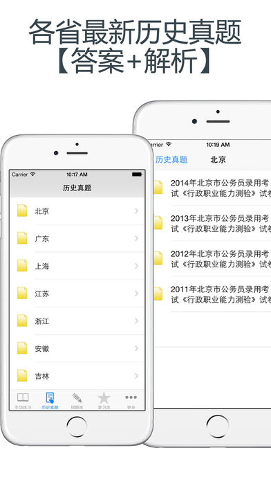 本软件为行政职业能力测验考试题库的软件,适用于公务员、事业单位、政府干警、村官招考等,精心准备了2015年最新考试题库和历史真题库(共计8000多道)。范围包括常识判断、言语理解、数量关系、判断推理、资料分析等。以及包括各省及中央、国家历史真题2011年—2014年,为考试的提供了充分的复习准备,可随时随地学习练习,有效帮助顺利通过考试,学习知识通过考试必备神器! 【由于本软件一直在进步,从未被超越,引来了竞争对手的恶意评价,我们鄙视这样的行为,但我们始终相信群众的眼睛是雪亮的。如有任何地方不满意的,可联系客服进行退款。】 【功能介绍】 1、专项试题练习:针对知识点的习题进行强化练习,可选择不同题型,并可手动将易错或未牢固掌握的题加入复习库和错题库,以便反复练习。 2、随机:随机生成100道试题模拟测试,检验复习成果,可自动将错题加入到错题库。 3、历史真题:精选各省及中央、国家历史真题题目,可进行模拟考试,检查复习成功。 4、错题库:可自动加练习过程中错题加入收藏,以便反复练习。 5、收藏夹:可在练习过程中自行收录题目到收藏夹,形成自己的小题库,针对性练习,提高通过率。 6、安装后可离线浏览,不用联网也可以浏览,速度快,无广告、无插件。 7、可设置答题时界面的字体大小。 8、支持同时在iPad/iphone/itouch等多种设备中安装。 9、定期更新题库。