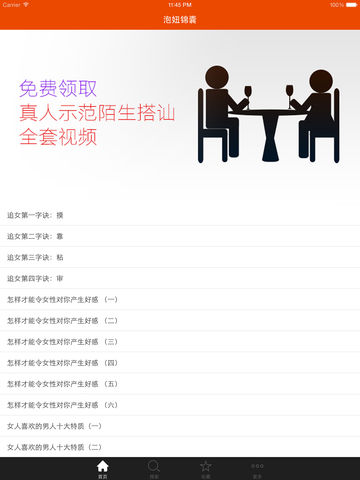 《泡妞锦囊》 我们为什么要系统的学习如何追女生? 女生是个复杂的情感动物,即使是恋爱中的女生,因此掌握女生的恋爱心理是很重要的,它会帮助我们快速获得爱情,也能让爱情保鲜。理论指导实践,成功终将不远! 此应用能做什么?它教你如何甜言蜜语打动女生,教你如何写情书... 还有此应用也会告诉你:其实很多漂亮的女生压根就没人追!呵呵,聪明的人已经下载了,励志终身单身的人还在犹豫!