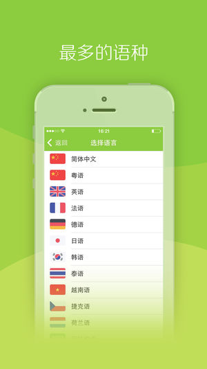 【产品简介】 最轻量化、最精准的智能翻译应用; 支持语种: 1.简体中文 2.粤语 3.英语 4.法语 5.德语 6.日语 7.韩语 8.泰语 9.捷克语 10.荷兰语 11.阿拉伯语 12.芬兰语 13.匈牙利语 14.印度尼西亚语 15.意大利语 16.挪威语 17.波兰语 18.葡萄牙语 19.俄语 20.西班牙语 21.瑞典语 22.土耳其语 23.越南语 【产品特点】 1:告别填字式的直译,提供最准确的长句翻译; 2:语音直译,直接说话即可翻译对应的语种并人工发音;…