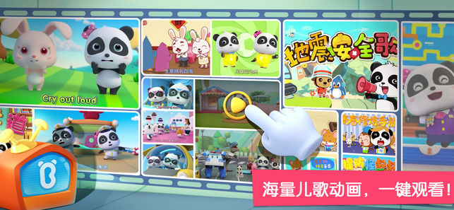 >>>10+互动故事,宝宝畅游童话王国 【中秋节故事】壮壮的月饼被偷走了,你能帮它做月饼吗?馅料由你来挑选!(学习传统文化) 【消失的云朵】小灰云被大魔王抓走啦,你能成功拼图找到线索,解救它吗?(观察能力) >>>15+小游戏,持续新增,乐趣不断 【欢乐捕鱼】制作完鱼饵,出发去捕鱼咯。鱼儿上钩了,快把它放入桶里吧!(动手能力) 【制作沙拉】切一切水果,倒入你喜欢的调味酱,搅拌均匀,做出美味沙拉!(创意DIY) >>>700多集儿歌动画,开启欢乐童年 【安全好习惯】儿歌教学,教宝宝上车后系好安全带、不吃陌生人的东西等。(安全知识) 【神奇简笔画】动画教学,教宝宝如何画出西瓜、巴士、番…