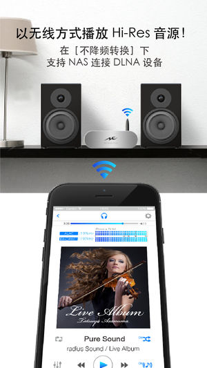 支持Hi-Res音乐播放的软件【NePLAYER】是采用简单易用的概念,让用户可以很容易的享受高音质音乐的音乐播放软件。 用耳朵听Hi-Res音乐的同时,用眼睛看高音质音乐的播放。 ※请在购买之前确认相容机种、注意事项等※ ※请另外自行准备高音质音乐※ ■ 特征 (1) 使用iPhone播放Hi-Res音源 可以在iPhone中播放Hi-Res音乐的「NePLAYER 」是可以看见Hi-Res音乐播放状态的内置「Hi-Res Visualizer」(专利申请中)的软件。以「Hi-Res Visualizer」,可以简单的视觉确认播放中的歌曲是否为Hi-Res音乐、播放的音乐是否被降频而劣于原…