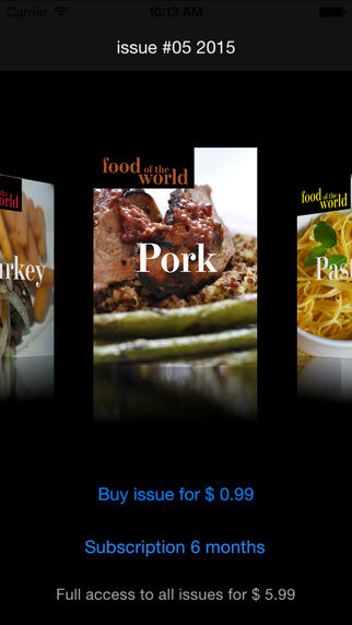 FoodMag Journal of healthy and delicious food from around the world. Take time to read the issue and get new information about life. Fresh issue 2 times per month for $ 0.99 How Subscriptions Work: To get a full issue, enter the in-app store and 6 monthly subscription for $5.99 (prices vary in other currencies) - Payments will be charged to your iTunes Account at confirmation of purchase. AUTOMATIC RENEWAL FEATURE: Your subscription will automatically continue unless auto-renewal is turned off at least 24 hours before the end of the current period. Your credit card will automatically be charged for another subscription period at the current subscription price. You can manage your subscriptions and turn off auto-renewal by going to your iTunes Account Settings after purchase