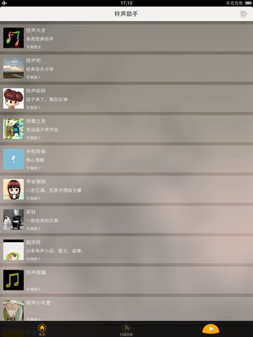超过十万首高品质铃声,真正的海量铃声全球首发 ,时下最火的歌曲铃声,影视、轻音乐、动漫、搞笑等各类铃声随你挑 。。。。。。简单、快捷,让铃声更随心! 首首精彩,天天动听,专属铃声随心淘,再也不用担心跟别人撞铃了 ! 特色功能: 1,【永久免费】:海量资源永久免费,每周持续更新,无需额外花钱购买! 2,【极致设计】:精致UI界面,给你带来舒适的用户体验! 3,【断点续听】:自动记忆上次播放位置! 4,【伴我入眠】:定时开启关闭,伴你入眠叫你起床! ------------------ 手机铃声、短信铃声、文本铃声、提醒铃声、闹铃铃声、搞怪提醒,样样都有! 专注质量,清晰悦耳,操作亲切方便.录音棚般的音质,让您的手机与众不同!