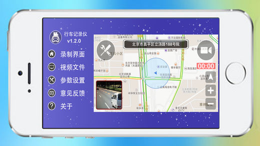 【产品简介】 这是一款让您的iPhone马上变成专业、功能强大的行车记录仪的软件!关键它能防碰瓷.开车的朋友都用它! 它可以在行车过程中全方位拍摄您看到的一切,循环录制,不会占满您的手机空间,您还可以方便的导出到手机相册,并导出到PC并永久保存您的信息! 喜欢旅游出行的朋友可以用来记录您的精彩旅途风光! 【特色功能】 1.支持自动分时段保存视频文件,您可以设置您喜欢的时长. 2.支持随意切换录像界面显示和地图显示,支持全国地图. 3.支持全国主要城市的实时路况显示. 4.支持录制30秒以后关闭屏幕显示,以达到省电的目的. 5.支持设置最大占用空间并且循环录制,不必担心你的手机内存会被占满. 6.支持选择录制视频的画质(高质量视频清晰,但是占用内存相对较大). 7.支持选择录像的时候开启静音模式. 8.支持把视频文件导入手机相册. 9.支持录制过程中“一键拍照”并自动保存到相册. 10.支持一键清空所有视频文件. 11.支持来电自动保存视频,并自动恢复录制. 12.超大按钮设计,方便司机操作. 13.全横屏使用,操作方便,而且录像可以显示更大广角. 14.率先支持3DTouch功能,在iPhone 6s和iPhone 6s Plus上用力点击App的图标就会弹出直接开始录制的菜单. 15.支持轨迹记录功能,并在地图上展示走过的轨迹. 【注意事项】 1.请把手机放在车载支架上使用. 2.行车过程中请不要操作手机,以免发生危险. 【官方微博】 http://weibo.com/drivingrecord 【意见反馈】 cnmaps@qq.com