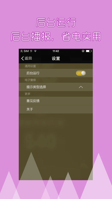 最受广大车主欢迎的出行免罚神器! 安驾电子狗可以在您行车时通过语音提示前方的各类电子眼摄像头,帮助您避免罚单,是您出行必不可少的工具。 【功能介绍】 1.电子眼数据覆盖全国300个城市,数据最多最全,永久免费更新。 2.超过35万全国最全最新的电子警察数据,云计算服务器实时更新数据,无需手动下载升级数据包。 3.软件消耗流量小,每小时仅产生200k左右流量。 4.省电模式,只需开启“后台运行”,电子狗会在后台持续为您播报,节省您的电量。 5.安驾电子狗提醒的危险点类型: * 闯红灯摄像头 * 测速摄像头 * 违规拍照摄像头 6.安驾电子狗兼容ios7.0以上的版本。 【联系我们】 官方网站:http://www.chetuobang.com 官方微博:http://weibo.com/u/2883973690 微 信:weixinlukuang QQ 群:157365156 客 服 QQ:2253873897 安驾电子狗会不断更新完善,请您持续关注,谢谢。 注意: 在后台运行GPS可能会大大降低电池的使用寿命。(Continued use of GPS running in the background can dramatically decrease battery life)