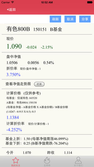 最近分级基金炒得红红火火的,想做分级基金套利的小伙伴们很多,但是面对各种专家、高人的套 利方法宣讲,大多数人还是一头雾水、无所适从。 下面“小分”(分级神器)给你作一个通俗讲解: 分级基金最为突出的特点就是子基金的价格在场内由市场供需关系决定,而母基金净值根据每日投 资标的表现来决定,由于价格决定机制不同,按子基金约定比例所计算出的市价与母基金净值之间 经常会存在价差。套利的机会就在这价差当中。 套利空间计算方法如下: 1.母基金净值,可直接在等基金公司网站查询 2.母基金市价=A市价*A比例+B市价*B比例(A、B市价在股市上可查询)。 3.溢折价率=(母基金市价-母基金净值)/母基金净…