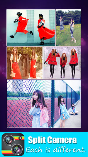 克隆相机将多张照片按照内置的布局拼接成各种特殊效果的照片。 主要特点: •14布局 •23滤镜效果 •支持直接拍照或者从相册中选择照片 •混合或拼贴图片 •支持多种编辑错咗:放大或缩小,移动图像,裁剪,旋转,色彩调整 •可保存到你的相机胶卷或与朋友分享