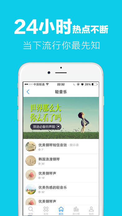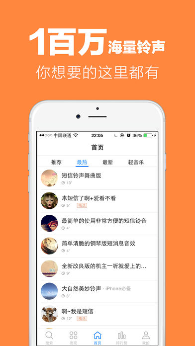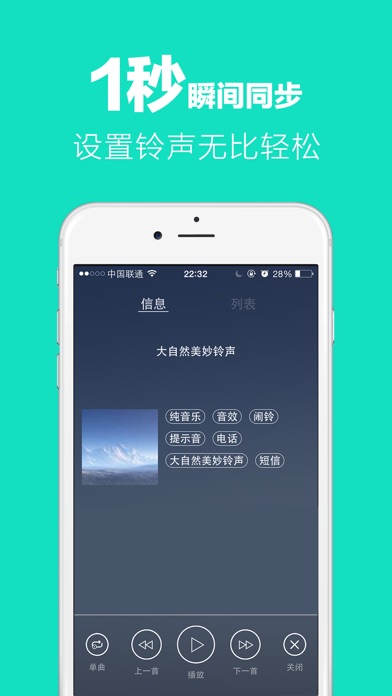 *** 5千万用户正在使用,AppStore排名第一铃声! *** 超10万好评,装机必备! *** 1键同步设铃声,iPhone铃声设置竟如此轻松! *** 1百万海量铃声,最全最大个性铃声库! *** 24小时热门铃声实时更新,潮流铃声任你选~ ===== 产品特色 ===== 【1键同步设置】 通过铃声助手一键传输喜欢的铃声到电脑,同步变得如此简单! 【1百万海量铃声】 最全最大个性铃声库,只要你想要的,这里都有。 【iOS 9全新设计】 独特设计交互风格,完美极致体验,让爱机瞬间享有高端品质,一秒高大上。 【24小时热点不断】 小编时时运营,最新流行,最热潮流,最火铃声。铃声响起,瞬间惊呆小伙伴。 【100+专业分类】 影视热门,流行金曲,经典音乐,游戏动漫,最新神曲,搞笑卖萌,只要你喜欢的,我们都知道。 【1键个性搜索】 突然听到一首好听的歌曲,好想据为己有,马上一键搜索,立即get√ -------------------------------------- 商务合作QQ:2850157163 --------------------------------------