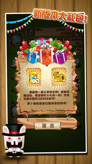 微创新三消游戏《保卫疯狂萝卜镇》,迎暑期,奔小康。新地图小康村开放!! 新增分享功能!分享游戏成果,向朋友们炫耀自己的小镇吧! 萝卜镇的居民因为萝卜口的膨胀而继续开坤新的土地!他们找到了一个世外桃源般的地方,有山有水,还有两个仓库! 当然,可恶的兔子也依然存在……可怜苦命的萝卜们,继续发展富裕的小村庄~顺便消灭坏兔子吧! 胡萝卜:喂,小萝卜,你后面有只兔子⋯⋯! 小萝卜:你说什么⋯⋯? 胡萝卜:我说你后面有只兔子!!!!! 小萝卜:背景音乐声音太大,我没听见!!!你再说一遍!! 胡萝卜:你后面有兔子!!!!! 兔子:啊呜~~!!咔~咔~咔~咔~咔! 胡萝卜:啊啊啊啊啊啊啊!!!!!!!吃萝卜啦!!!吃萝卜啦!!!救命啊@@@@!!!!!! 兔子:哼哼=^=! 清新可爱的休闲游戏《保卫疯狂萝卜镇》再次来袭! 这是个和平宁静的萝卜小镇,萝卜每天辛劳的成长,希望可以让这里发展成举世闻名的小镇。萝卜们每天跟同伴们合作,变成大萝卜,巨萝卜甚至萝卜城堡。一天,一只兔子发现了这个世外桃源一般的地方,他回到兔子窝拉帮结伙!让一群兔子进驻了这个小镇。萝卜与兔子⋯⋯?哇哇哇哇!太可怕了!!! 田里乱跑的兔子成了破坏大王,会吃掉还没长成的萝卜!以最快速度堵死他们吧!保护我们的小幼苗~! 到处乱飞的魔法兔子也开始使坏,会跑到仓库里偷东西= =!喂喂喂!!!!!别拿走我的水晶球啊!!!!! 超强力的破坏道具,十字墓碑上阵!子曰:舍得一身剐敢把兔子拉下马!!!今日就是你们的屎期!!喔卜卜卜卜卜卜卜~~~~ 全新的成就系统,记录我们的成长历程!可爱的萝卜小精灵会到处散步~无限步数!38888金币大礼包!众多精彩~等你体验~! 萝卜芽:胡萝卜叔叔,你说的好棒哦!!! 胡萝卜:哎,我这么卖力,还不是为了内死去的小萝卜⋯⋯T T⋯⋯ 萝卜芽:胡萝卜叔叔,小萝卜姐姐怎么死了呢⋯⋯? 胡萝卜:都是内个可恶的兔子!可恶的兔子!! 萝卜芽:兔子是什么撒⋯⋯? 胡萝卜:兔子就是⋯⋯ 兔子:啊呜~~!!咔~咔~咔~咔~咔! 胡萝卜:啊啊啊啊啊啊啊啊啊啊啊啊!!!!!!救命啊@@@@!!!!!!!!!!吃萝卜啦!!!吃萝卜啦!!!!!!!!!!! 兔子:哼哼=^=!