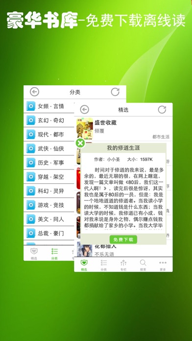 万部分类书库:女频言情,玄幻奇幻,现代都市,武侠仙侠,历史军事,穿越架空,科幻灵异,游戏竞技,美文同人,总裁豪门,恐怖惊秫,推理侦探,耽美纯爱,宫闱情仇,名著经典,宦海官场 应用特色: 1、六种书架主题,六种阅读配色,总有一款适合您 2、字体支持隶书、楷体、兰亭、标准四种样式 3、自动记忆上次阅读,方便您续读 4、网络书库分类清晰,飞速下载 5、灵活调整背景亮度、行间距/页边距/段间距等 6、致力提供最佳阅读享受,绝对可以信赖的阅读专家 人性化的设计,简洁的风格,便捷的操作。更有万部书城免费下载,带你一起畅享图书之旅。 **************************** 本产品所有图书均已获得版权商授权,请维护正版内容,净化网络文化环境。