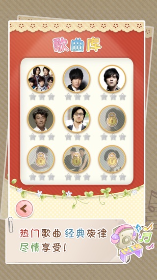 最用心、最好玩的记歌词游戏来了!!! 你喜欢音乐吗? 你是歌词达人吗? 你想要参加“我爱记歌词”吗? 不用报名,手机上就可以啦? 一边听好歌,一边记歌词,大家K起来!!! ----------------------------------------------- 游戏支持:GameCenter iPhone5 内容简介 最全面的内容:精心挑选时下热门的我爱记歌词、中国好声音、我是歌手、直通春晚、挑战麦克风等一系列音乐节目中的好歌精心打造,不比歌喉、不比长相,只要记得歌词,就能玩的High。 最简单的操作:挑选你认为正确的歌词,按照顺序点击,即刻过关,操作简单,欢乐不减。 最快捷的分享:完成游戏后,可以分享到新浪微博、腾讯微博、人人网、QQ空间、微信,邀请好友一起分享游戏的欢乐 最美好的回忆:让那些曾经打动你我的字字句句,伴随着动听的歌曲,在简单有趣的游戏中再次浮现,不管是任何年代、何种歌曲都可以在我们设计的游戏关卡中,找到共鸣。 游戏模式 过关斩将模式:一共分为九关,分别是新春贺曲、中国好声音 、成名曲、校园民谣、摇滚之夜、流行金曲、七零年代、八零年代、九零年代一共九个分类,让你尝试不同的类别,不同的风格,总有一款适合你。 一站到底模式:此模式中,你将挑战不同曲风、不同类别的歌曲,将考验你的应变能力和记歌词的范围,相信一定能够激发你记歌词的热情,让我们欢快的唱吧。 一边听好歌,一边记歌词,大家K起来!!!