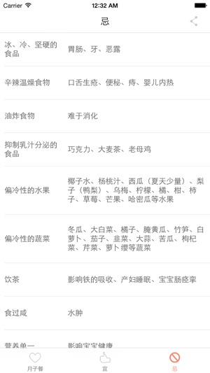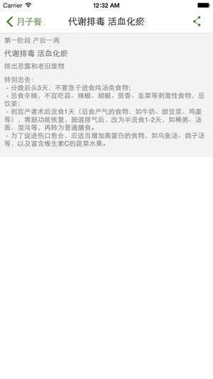 科学坐月子,三大要领: -正确的饮食方式(60%); -正确的生活方式(20%); -充分安静的休养(20%); 以中国最经典科学的月子餐食谱为主要内容,详细说明每个月子餐的做法和功效,为产妇提供全面科学的坐月子指导,希望有助于提高产妇的健康。 坐月子的宜忌,道出科学实用的月子生活方式和理由,细说那些生活习惯有益,那些不好习惯,简单实用。 比如,月子水果如何吃,那些日常食物适合产妇吃。 应用支持邮件、短信、微信和新浪微博的分享。应用支持简单中文和繁体中文。 月子餐的内容科学严谨,由中国广东省的三甲医院提供, 也是卫生部开设孕妇课堂的讲授课程内容之一。