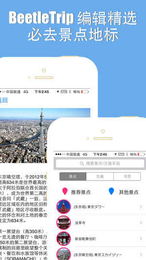 东京甲虫旅游指南是您最好旅游伙伴,应用的离线GPS可以实时跟踪您在东京的位置,你再也不用担心在旅途中迷路。这个应用还为您提供了AR扩增实景路线指引,所有的地铁站和主要车站准确位置,地铁路线搜索,城市里的必去旅游景点,天气预报以及货币换算器。我们应用特点是:不需要3G/4G/WiFi,绝对不需要任何网络数据, 100%离线,可以省却你大量昂贵的漫游费用。 独特功能包括: 1.离线GPS定位 - 不需要任何网络数据,离线GPS可以实时跟踪您在地图上的位置。 2. 离线指南针 - 不需要任何网络数据, 你可以通过离线指南针指向您往正确的方向。 3.不需要任何网络数据,不需要WiFi/3G/4G…