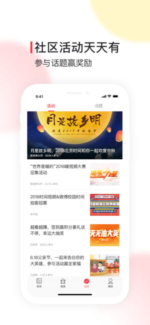 北京时间全新上线,热点新闻资讯在线直播! 个性化精准推荐,专业提供最适合您的阅读内容。 我们根据您的喜好和习惯,从全球海量图文、视频、直播新闻资讯中选择最新鲜最有意义的,推荐给您,您也可以将关心喜爱的频道、内容随时收藏订阅。 泛资讯第一手现场直播,视频化新闻内容。 云记者汇集全球媒体及记者,用直播第一时间触达第一现场。二十四小时直播专区,保证你随时打开都是新鲜资讯。海量优质电视节目精编与短视频,碎片时间随心观看。 数万自媒体入驻时间号平台,独家原创团队深度新闻报道。 每天超过30000篇原创内容,只为你好看。原创团队深入调查,总有不一样的视角看世界。 北京电视台节目直播与视频剪辑…