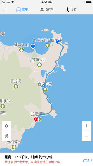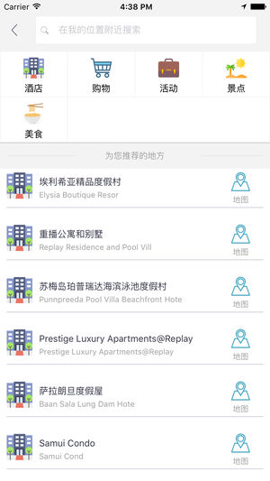 苏梅岛中文离线地图是一款支持中文地名和酒店标注的地图。所有数据全部打包在应用中,在离线环境在完全可用,是去苏梅岛旅游的必备工具。 主要特征包括: 1 地图数据完全离线 2 酒店全部中文标注,并提供酒店详细描述 3 部分重要地点中文标注 4 支持酒店查询,快速在地图上定位 5 支持景点、购物、美食、活动等信息在地图上的展示,并提供列表视图快速浏览 6 支持附近酒店、景点、购物、美食、活动的查询 7 支持离线路径规划
