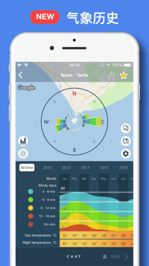 全球准确风预测! Windy -是风发烧友的人方便的应用程序,提供准确,清晰的全球风力预报。它是一个滑板手,滑浪风帆者,游艇运动员,跳伞,滑翔伞,骑自行车者和渔民必须有的应用程序 Windy的特点: • 预测未来10天3小时步全球风电(如windguru GFS27) • 来自世界各地多个8000气象站的实时风数据 • 互动地图风 - 你可以看到风在地图上吹 • 在数据库中收3万点 • 容易地通过地图和地点或场所名称中使用点搜索 • 增加点到我的最爱 • 创造新的斑点 Windy 的优势: • 由风发烧友创建给风发烧友: • 漂亮和简单的界面! ---------------- 在…