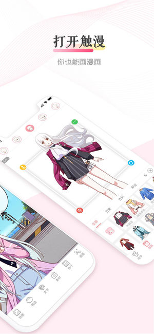 不会画画,也能成为漫画家!只要有脑洞,用触漫,3分钟创作出精美条漫!成为腾讯、快看的签约作者,赢得百万粉丝! 想写有趣的故事?试试千万00后都在读的触漫剧,用文字、音乐、画面写故事,让你的故事像电影一样吸引读者! 触漫,在这里遇见全世界的创作梦! 【功能简介】 + 五分钟创作一幅条漫,三分钟创作一个触漫剧,人人都是创作者 + 每日更新百万部漫画小说,免费内容看不停 + 自由创建角色人物,服装天天更新,造型多变 + 更新作品拿稿费,更有千万粉丝追捧催更 + 创作不孤单,组建社团和小伙伴一起创作 请大家和触漫娘一起成长吧,我们还在梦想的路上。 如果你也有一个创作梦,请加入触漫,和大家一起努力吧…